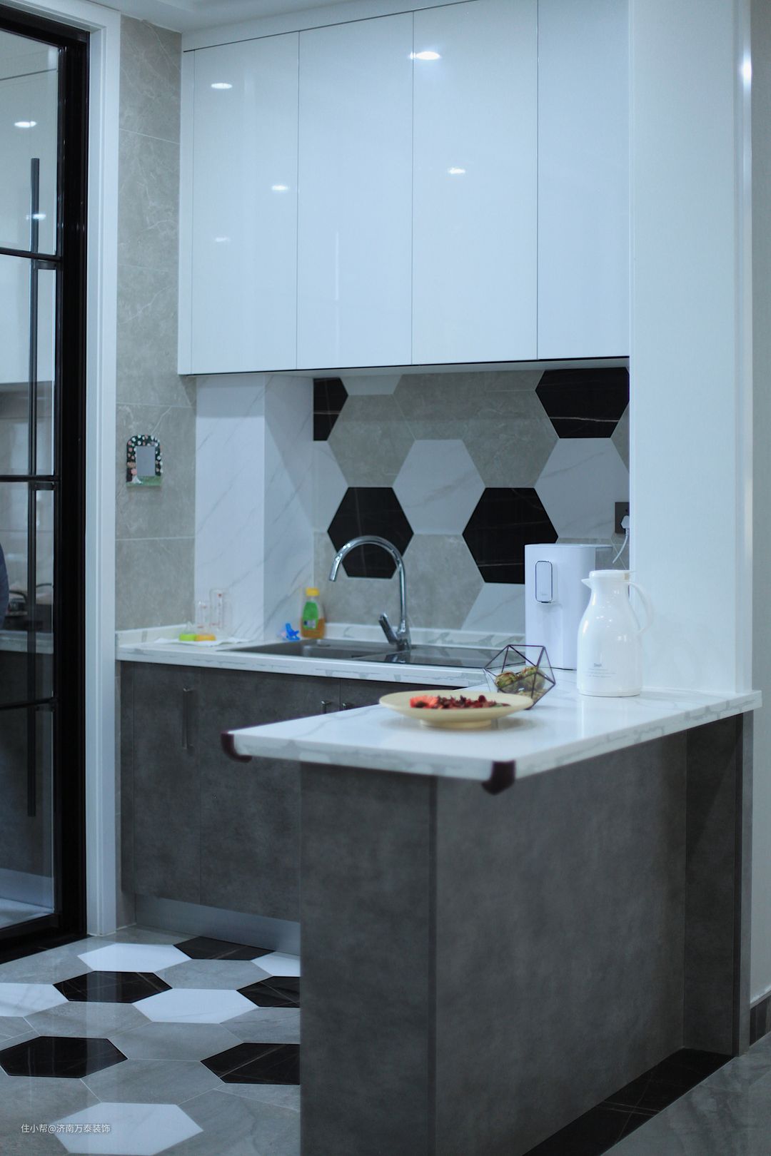 有些橱柜台面另算,这样橱柜单价就会便宜点。一般是石英石台面,和橱柜一起定制。
