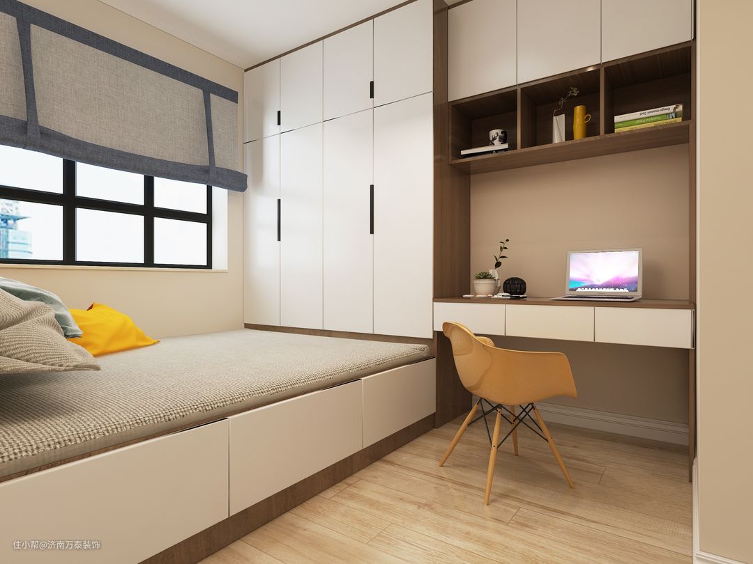 榻榻米是全屋打,简陋版只是加个地台,升级版带抽屉和上拉式储物,更多会选择在床头或者床尾加装衣柜。