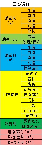 想着装修肯定离不开量房,很多东西都需要房间的面积尺寸,所以特意制作了一个面积表。大家只需要量一量长宽高,填下数据,自动给你算出墙顶地外带门窗面积喔~