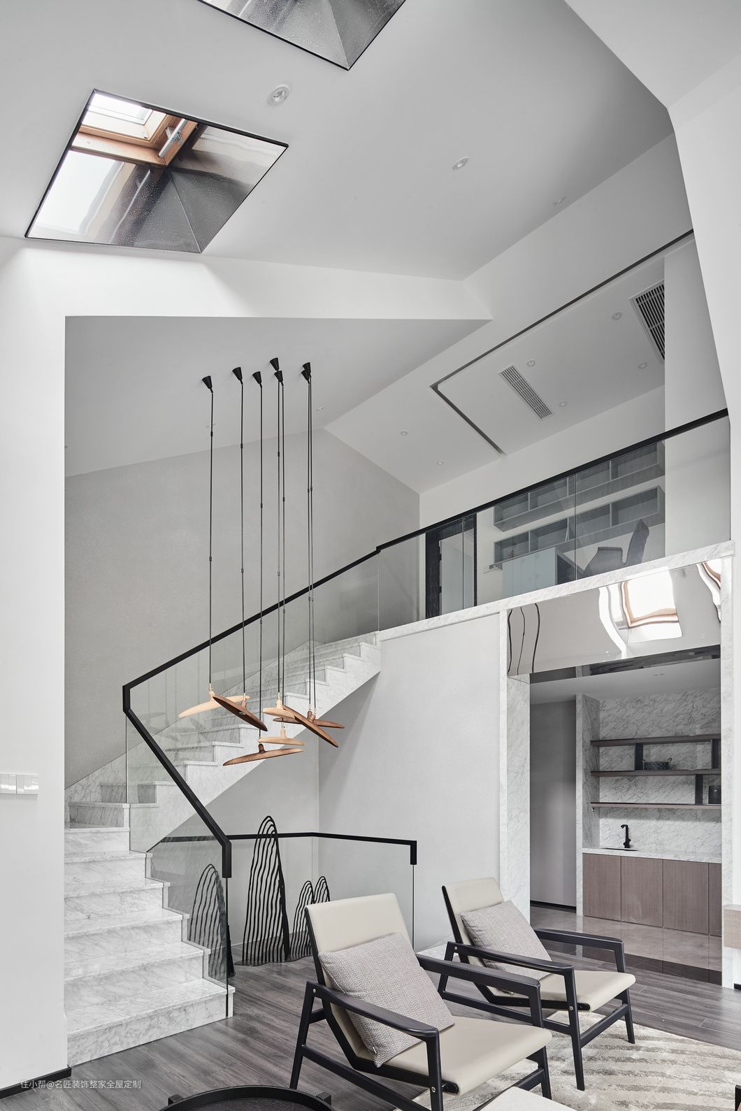 艺术灯和筒灯结合的无主灯设计,简单而不怠惰。