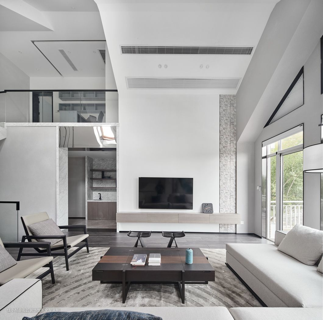 高挑的空间和毅然而上的楼梯,黑、白、灰色调的装饰,演绎一个大气、时尚有品位的现代美学设计。