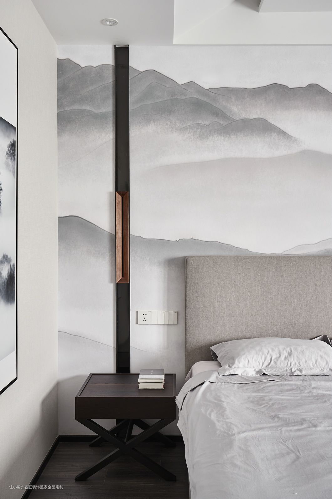 众山水墨墙布用于背景墙,通过设计与自然的交汇与结合,为空间制造更多可能性。