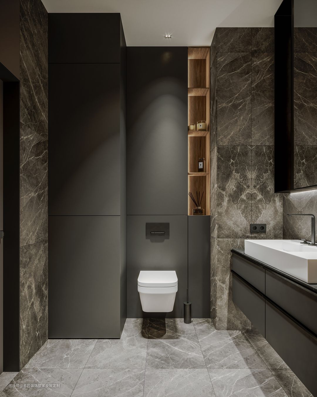 新颖之处是壁龛设立在洗手台对面