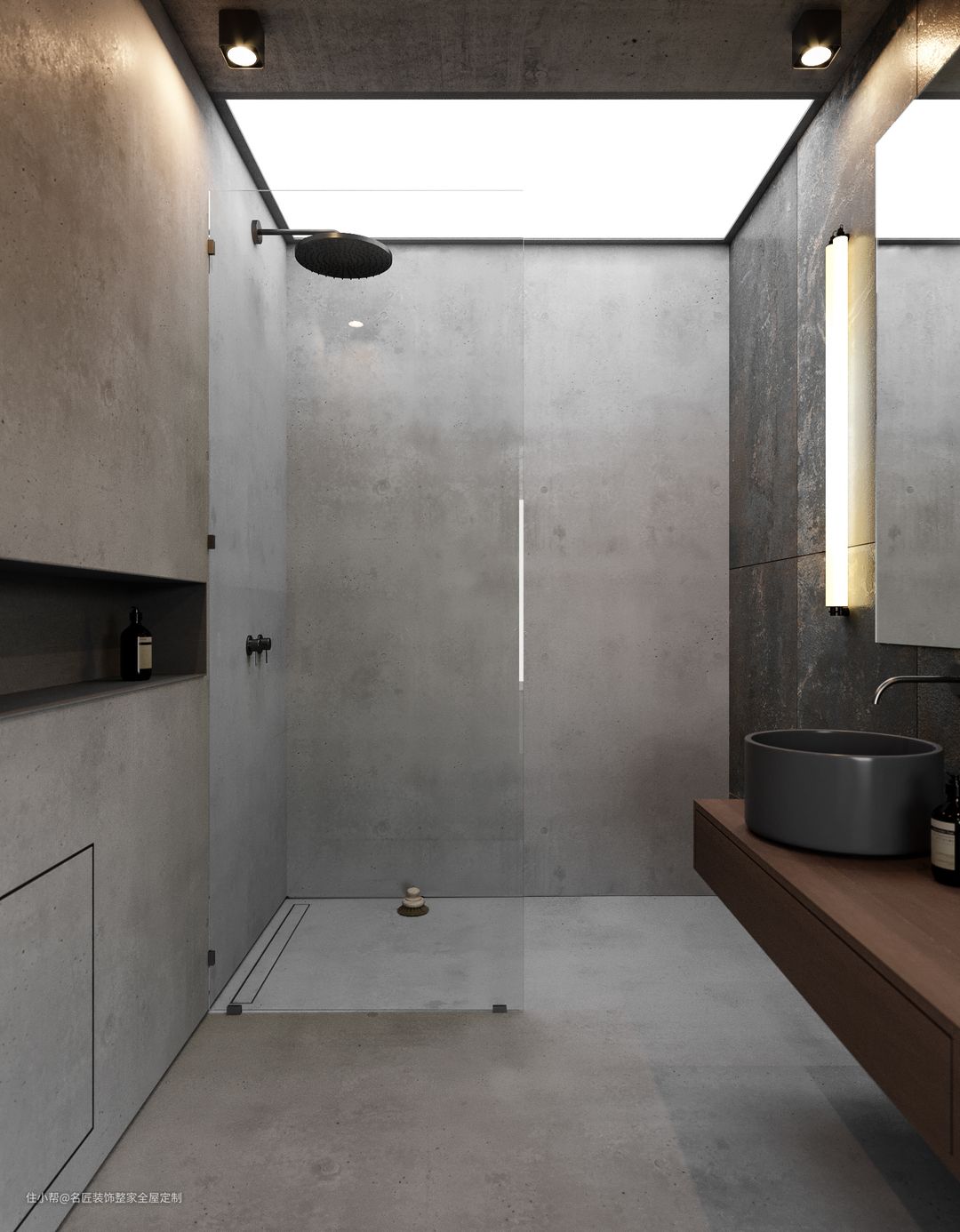 镜半边的灯带置于木色区域样式新颖