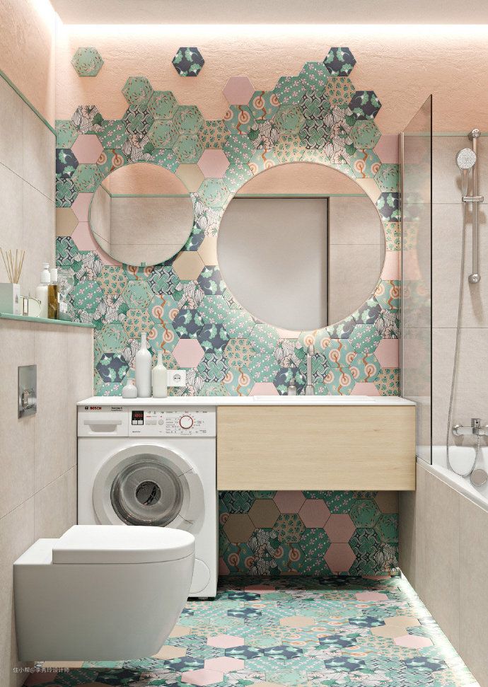 说完两者的区别,咱们再来说说墙砖的选购技巧。很多墙砖,都只有一小块墙面,就算用颜值很高的异形砖,小面积铺贴,也不会太贵,所以我们可以怎么好看怎么来。