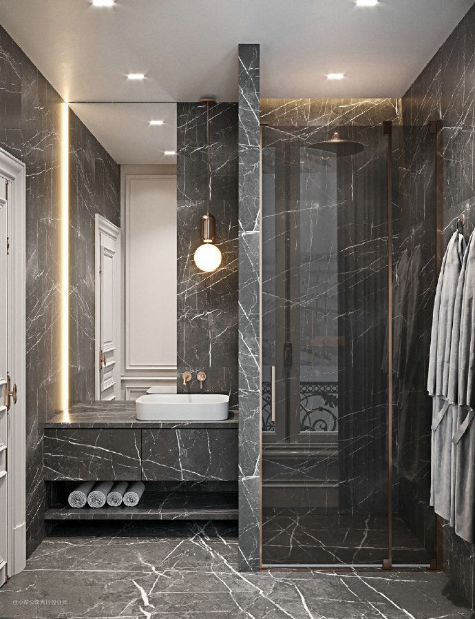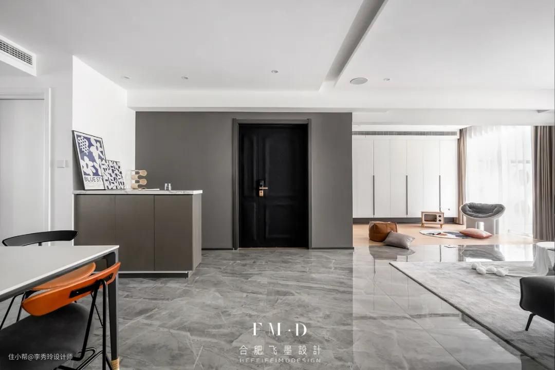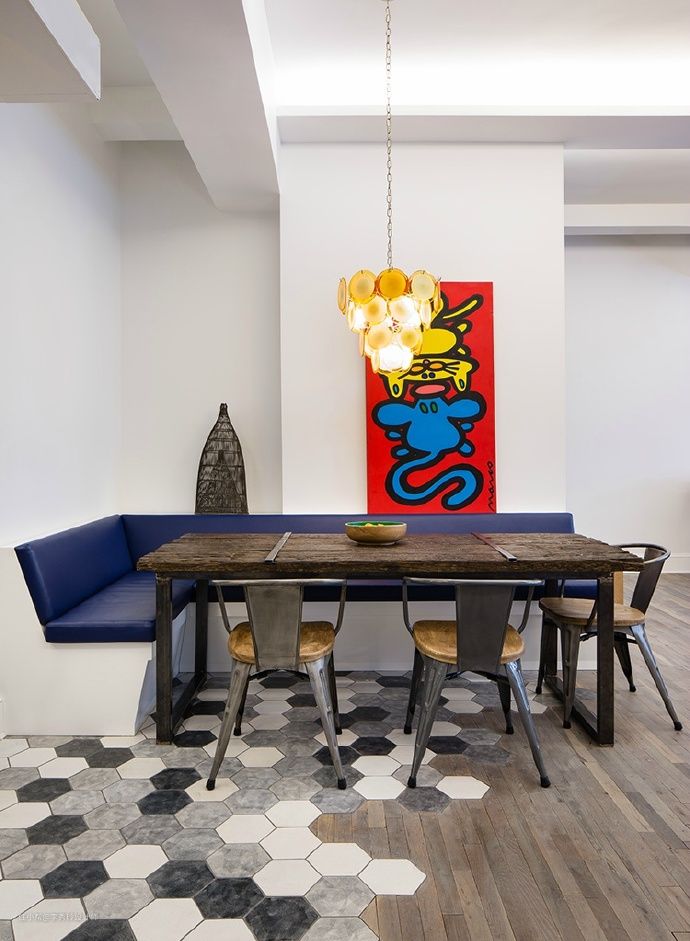 将两种不同的材质通过拼接的方式铺贴到一起,设计感强,颜值超高;用在空间的过渡处有划分空间的作用。