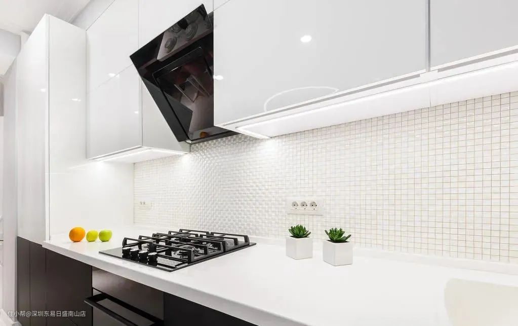 侧吸的集成灶,距离燃气灶更近,抽油烟机上方还可以放置调料。占据的空间要小于顶吸、侧吸的抽油烟机。这点来说,集成灶完胜。