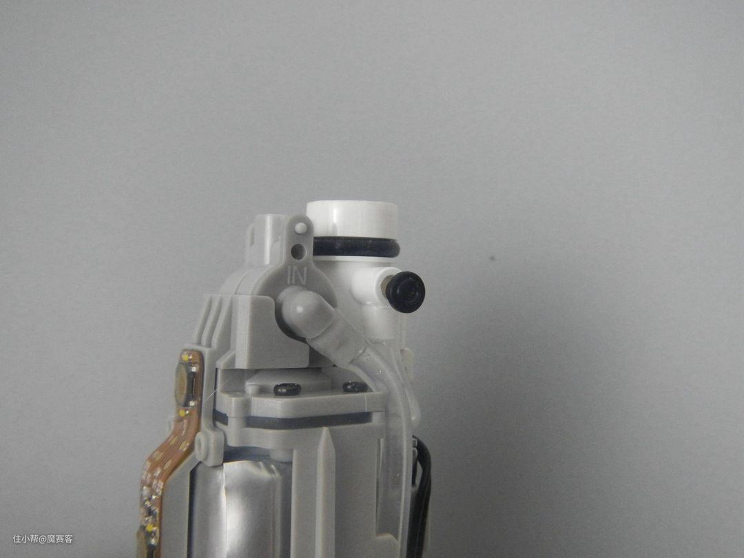▲可以看到电路板复杂了很多,也不见了令我不耻的大电阻了;水路/气路的独立设计在狭小空间中尽显做工的精细。