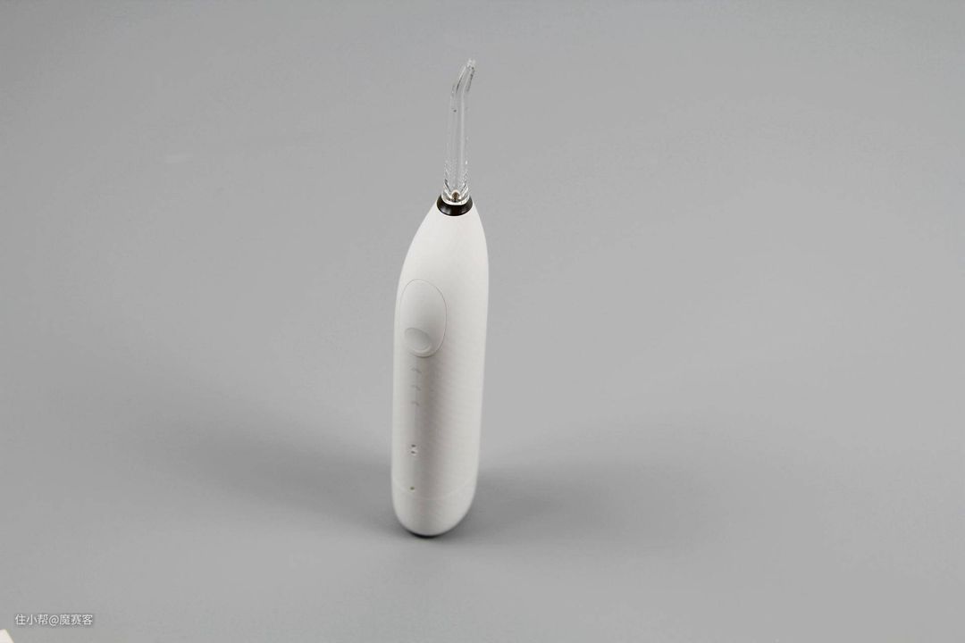 其实Oclean W1的喷射方式为间歇式喷射,一方面在我们对着牙缝喷射时,利用停顿的时间可以换需要喷射牙缝的位置,这样就能避免那种常喷射而导致的满口流水;另一方面,间歇式喷射能更有效的利用水量,水箱也因此可以做到更小,更方便使用漱口水。