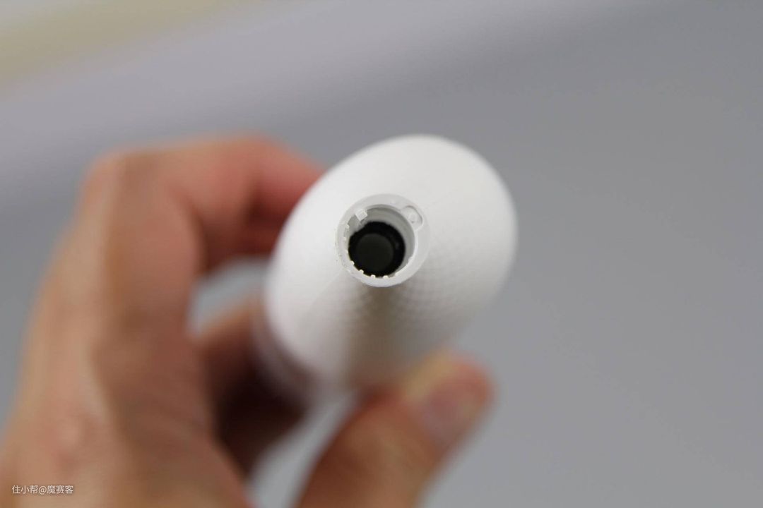 ▲磁吸式充电式设计最大程度保证了W1的防水性,W1拥有IPX5防水等级,(IPX5:可以消除对各方向喷嘴喷射水流的有害影响),但从拆解过程中感觉其IPX5等级可能说的保守了,当然,我只是一名修理工,这种专业数据还是以公示为准;自己试了下,磁吸充电大概在3个小时左右,而每天用一次(2分钟),至今3个礼拜没有充过电。