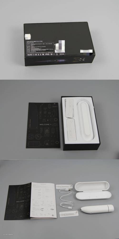 ▲包装设计简约干脆,底部有厂家和产品信息:内含冲牙器本体1个、喷嘴2个、旅行盒1个、磁吸式充电线1根、用户使用手册1本。同时支持蓝牙,但需要支持蓝牙4.0的Android5.1或IOS9.0以上版本的设备。