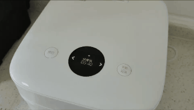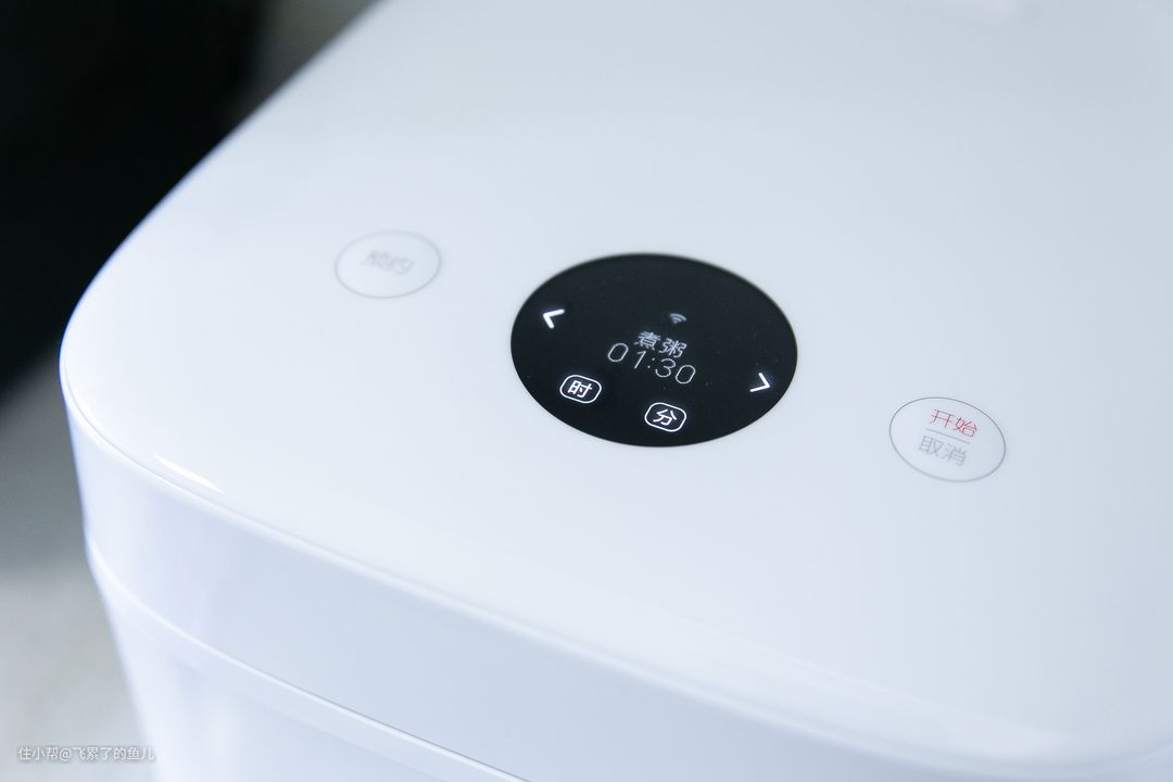 OLED屏幕本身支持触控操作,另外在它左右各设置了一颗实体按键,左侧为预约、右侧为开始/取消,同样为圆形设计,与屏幕风格一致。