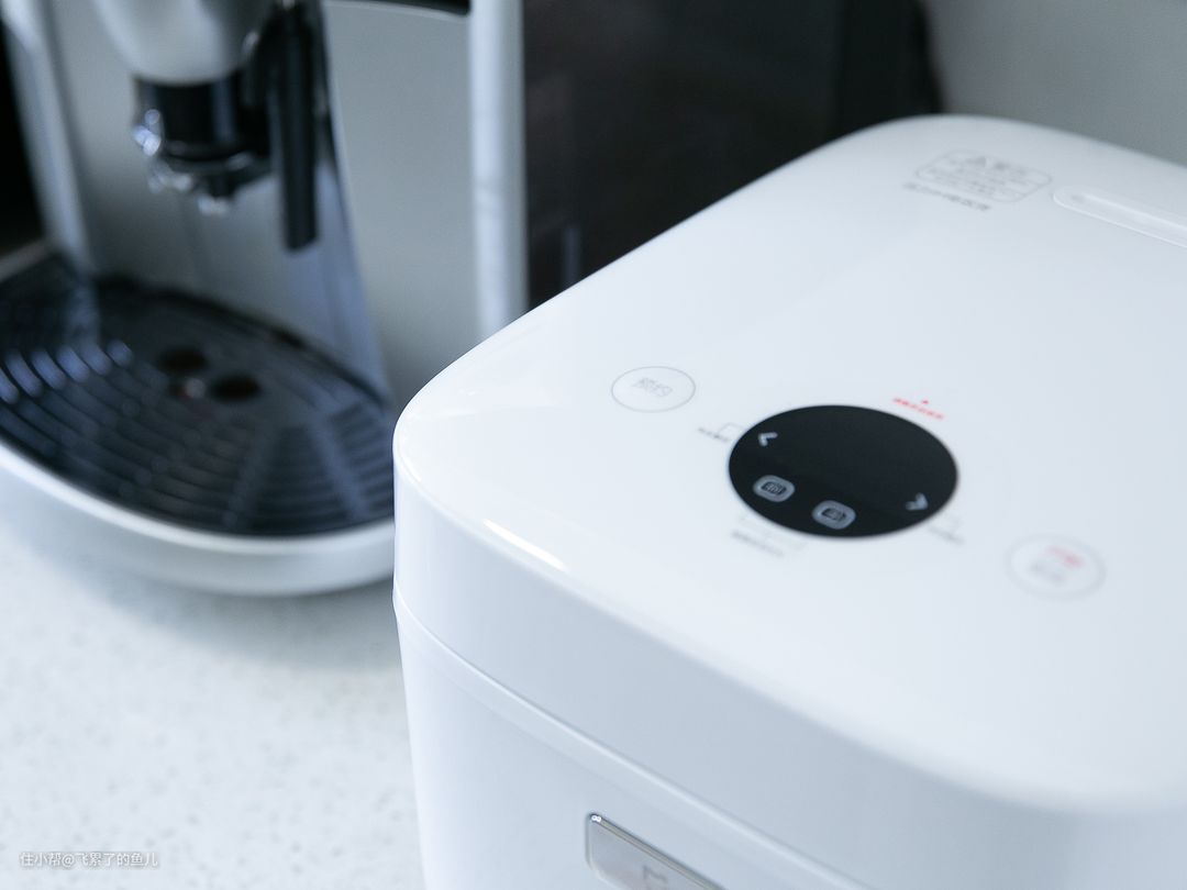白色为主的长方体外观棱角都进行了圆润处理,令整个饭煲看起来比较柔和。另外白色的外壳质感很出色,看起来有一种很通透的高级感。