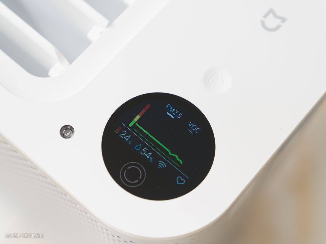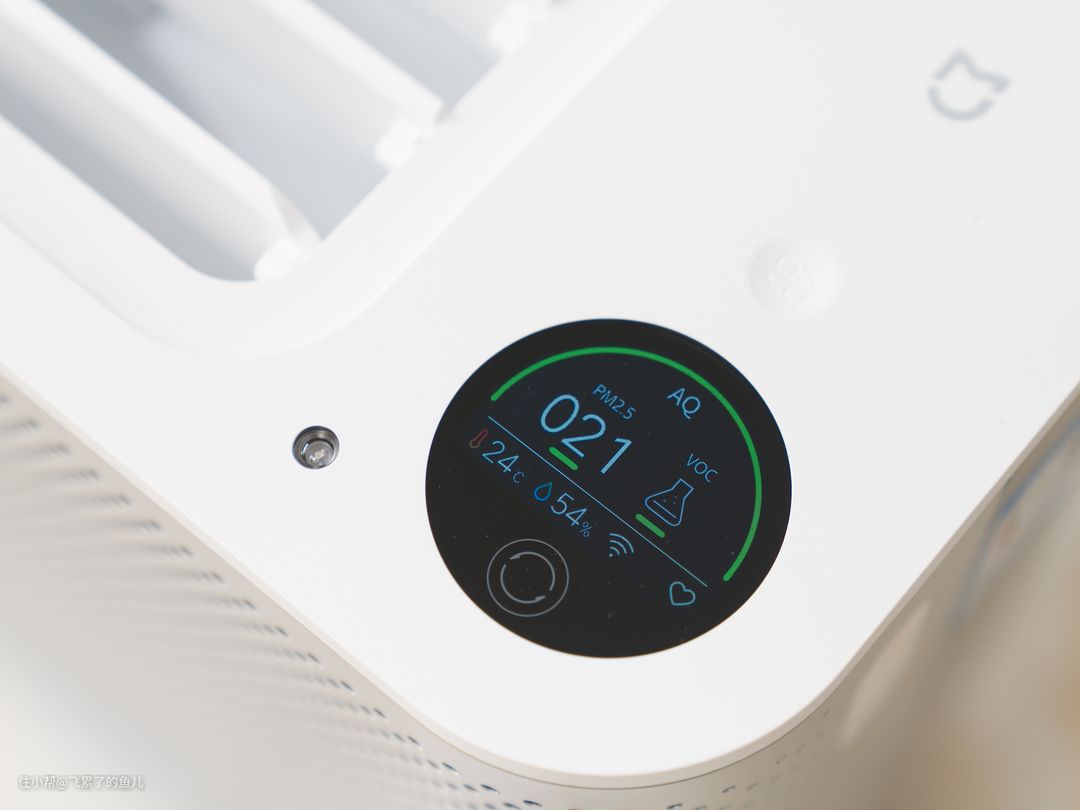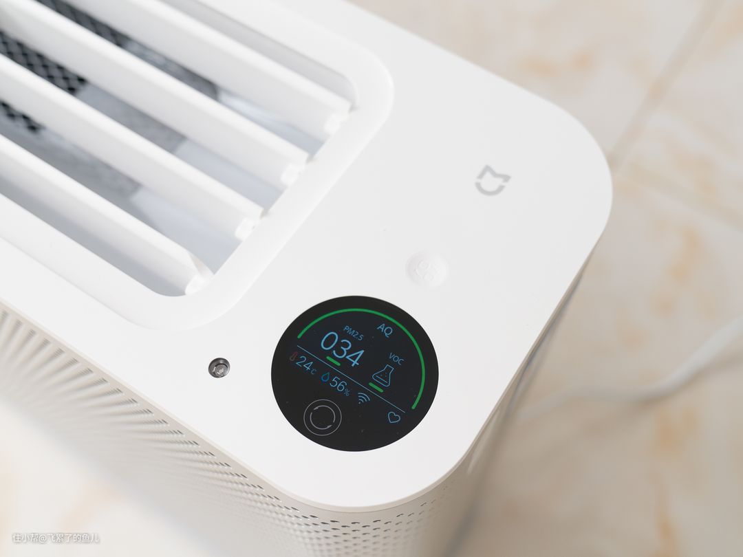 另外,如果你了解小米的产品,那么顶部面板那块圆形的OLED屏幕一定不会陌生,这是米家净化器Pro 的一个经典设计,可谓简洁、直观、实用。