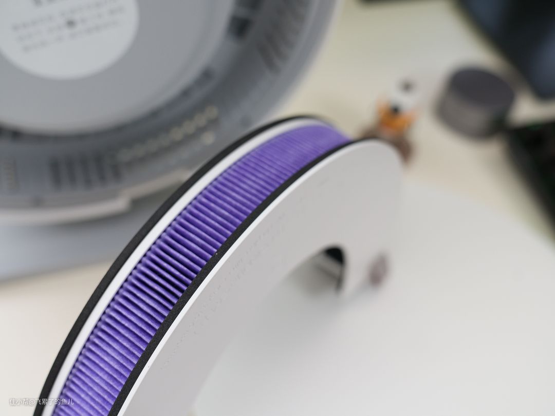 米家桌面空气净化器体积小巧,扁圆柱竖直的机身设计,在保证滤芯面积的前提下有效减少了对桌面空间的占用,设计还是蛮用心的。