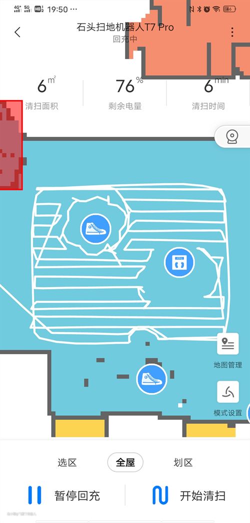 实际测试中,T7 Pro可以准确地识别出了鞋子,并围绕鞋子进行清扫,全程完全没有触碰,而且覆盖效果很好,APP的清扫结果也很好反应了T7 Pro对障碍物的识别和清扫线路的把控。