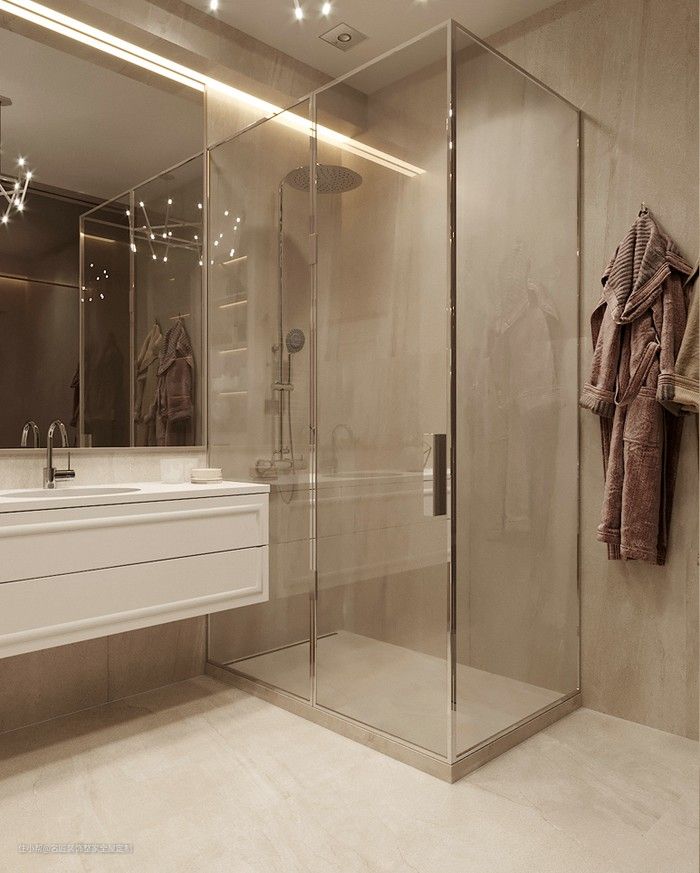 浴房内置独立大空间,顶部一侧内嵌灯带逢源之意
