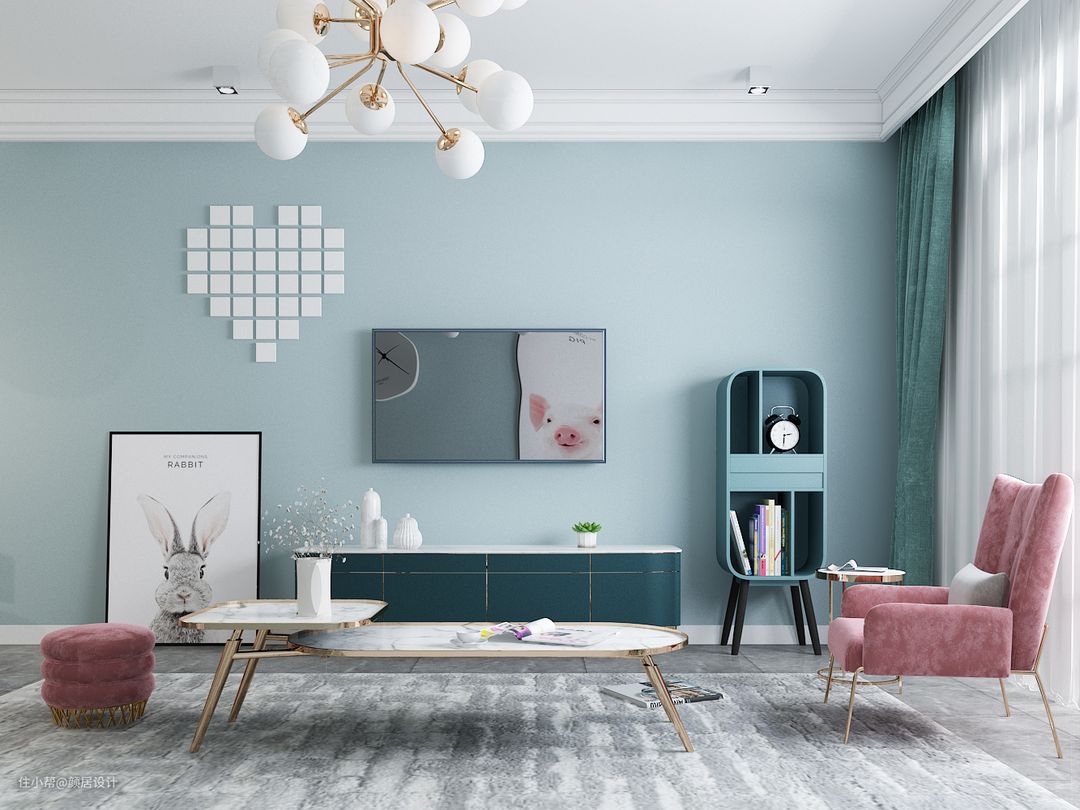选窗帘的时候可以用互补色去选择。