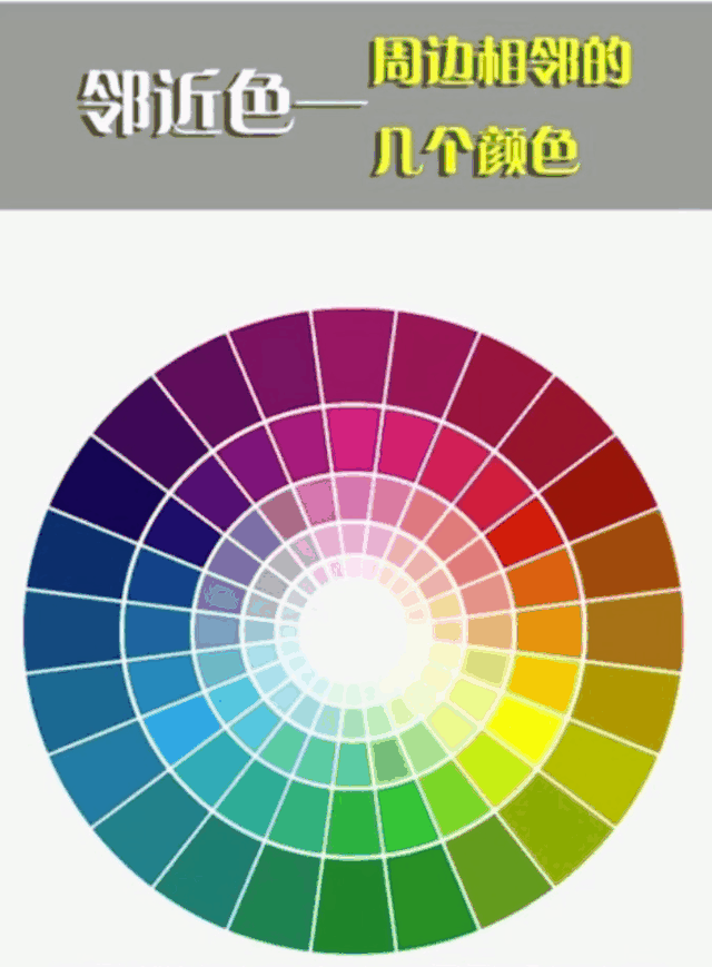 第一种近似色配色法,如果你家里的基础色是蓝色,那么和它挨着的这几个颜色就是它的近似色,那么选窗帘的时候就从这几个颜色中去选,尽量去跳开几个色阶去选择,不要挨着太近,否则色彩的层次感出不来。如果家里面是两种基础色,那么就选其中一种基础色的近似色就可以了。