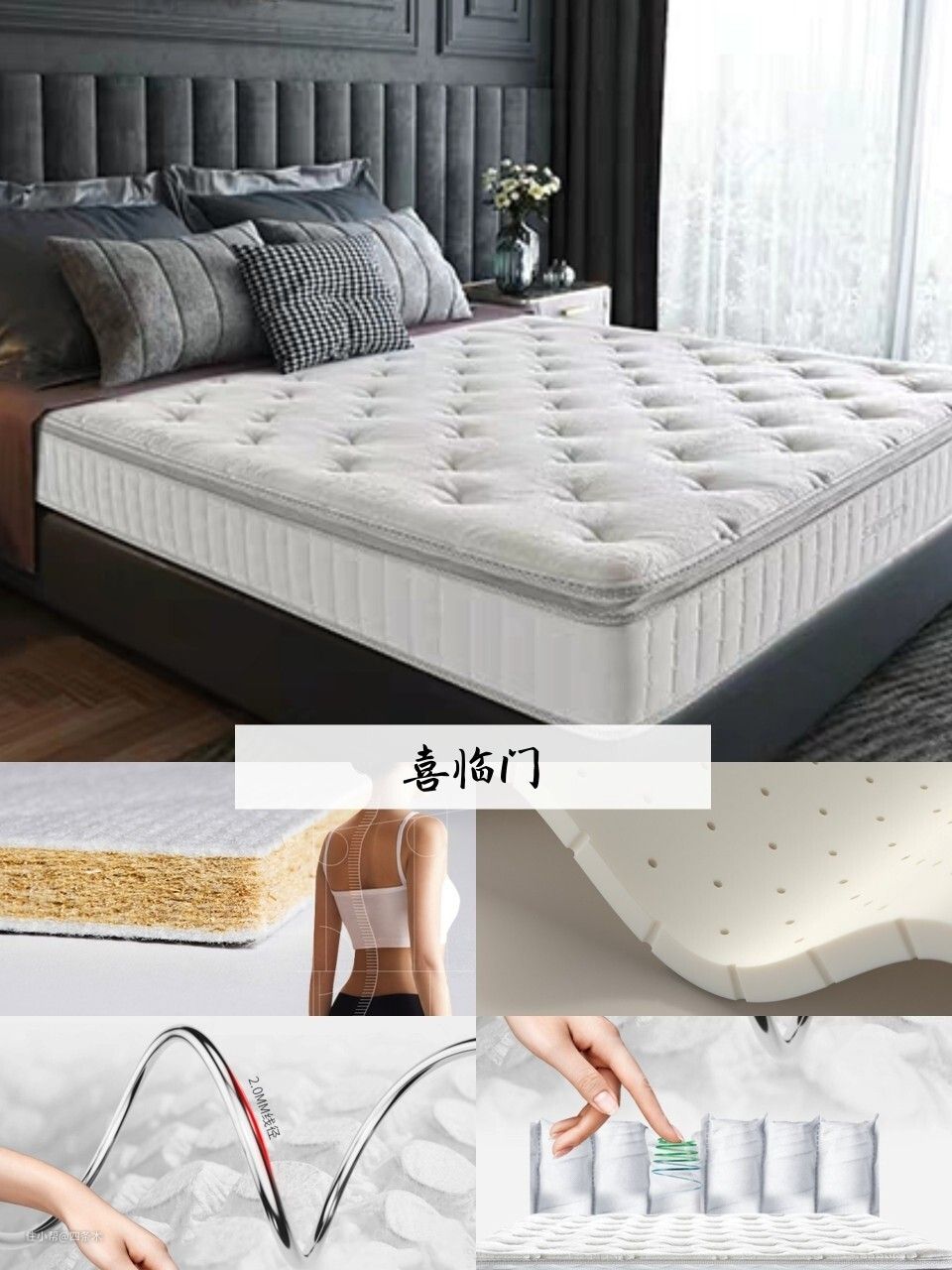 采用抗菌银离子面料,呵护睡眠环境。恒温凝胶记忆棉贴合肌肤表层,平衡舒适睡眠温度。东南亚进口乳胶,柔弹释放压力。6环独袋弹簧,静音减震,翻身不用小心翼翼,新婚家庭可以选。