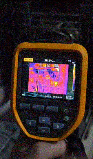 使用热成像仪可以看到,清洗完成后的碗碟温度大概是39℃,与人体温度差不多,拿在手里锅碗瓢盆都烫烫的。