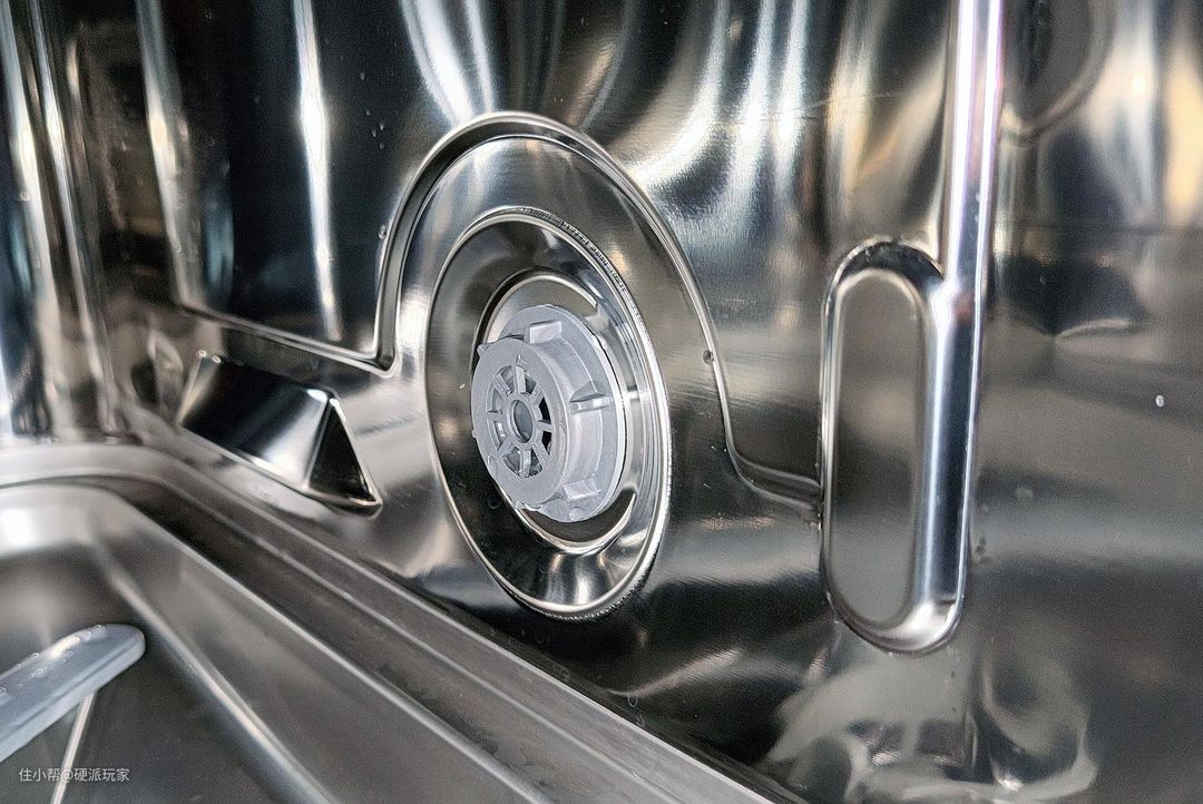 看官方介绍说,洗碗机采用了超薄水路和电机设计,极限排列压缩空间,释放了更大的内部空间。在我看来,最直观的感受就是,内部有效容积几乎占满了整个机器,几乎没有空间浪费。