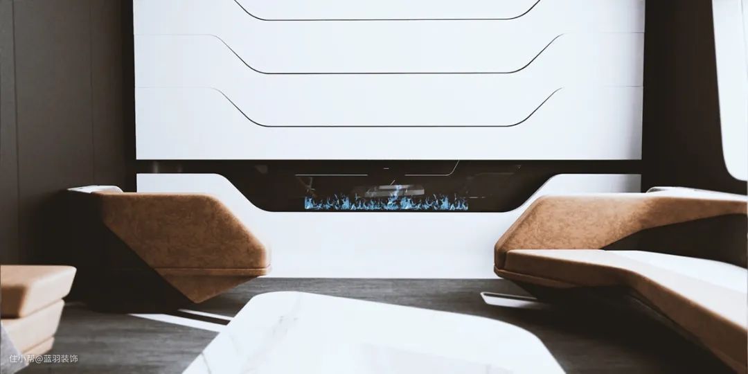 棕褐色的家具,加上光滑的白色茶几设计,使外观更为亮丽。