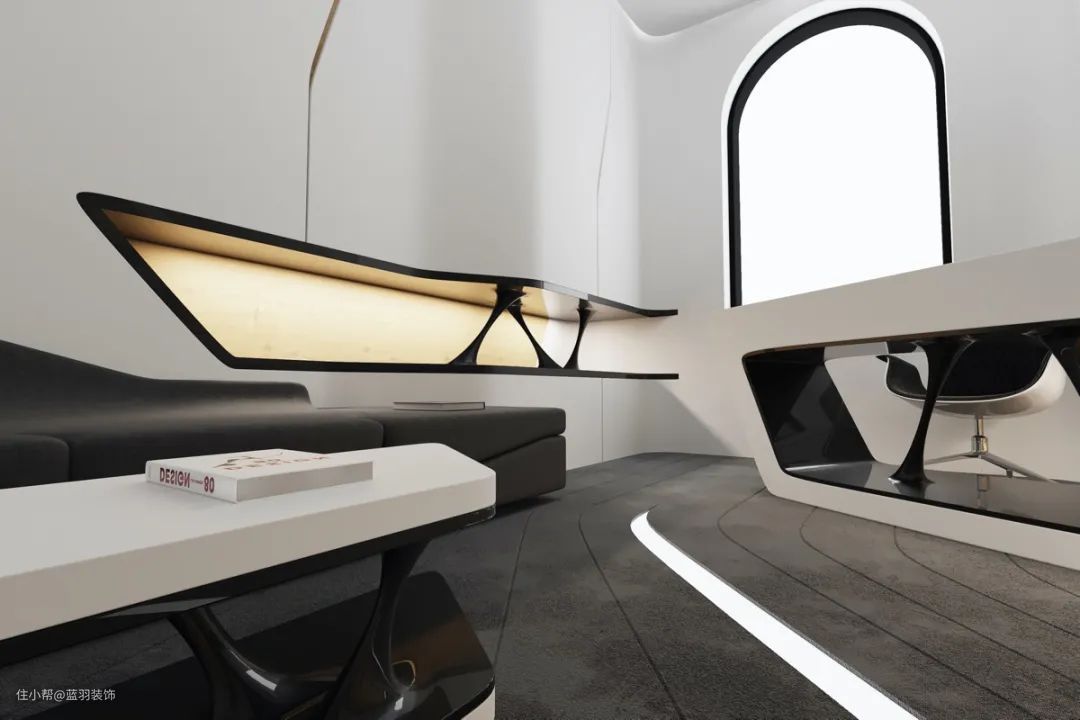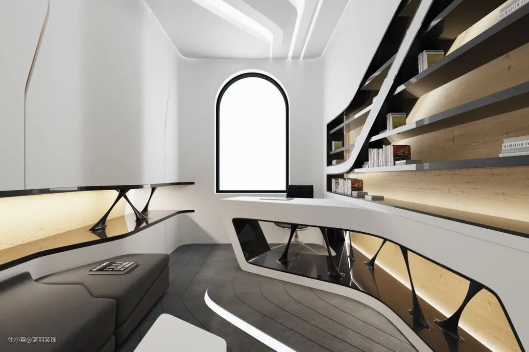 我们来到的第四个未来主义家居内饰采用完全定制的现代家庭办公设计。
