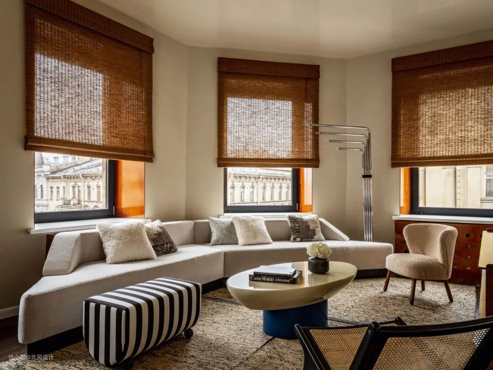 当然,如果客厅以简约风格装饰,则百叶窗和罗马帘将看起来更自然。