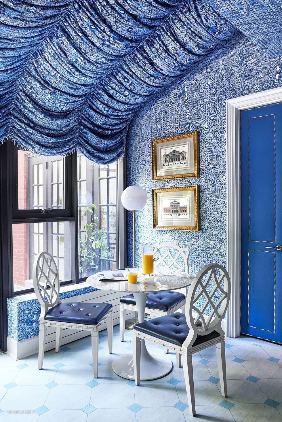 在色彩饱满的空间中,选择与墙面颜色一致的窗帘,打造连续性和一致性,这在优雅的用壁纸覆盖的房间内十分受用。