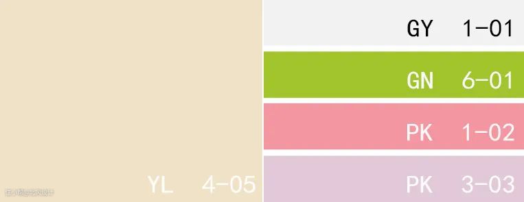 色卡:纳瓦霍黄色、亮白色、柠檬绿、火烈鸟粉、淡丁香色