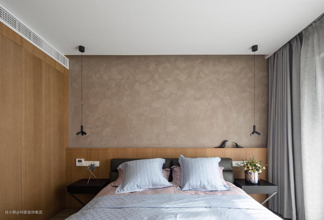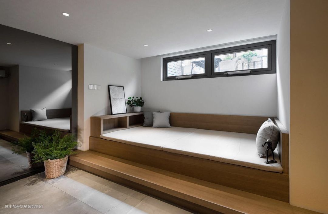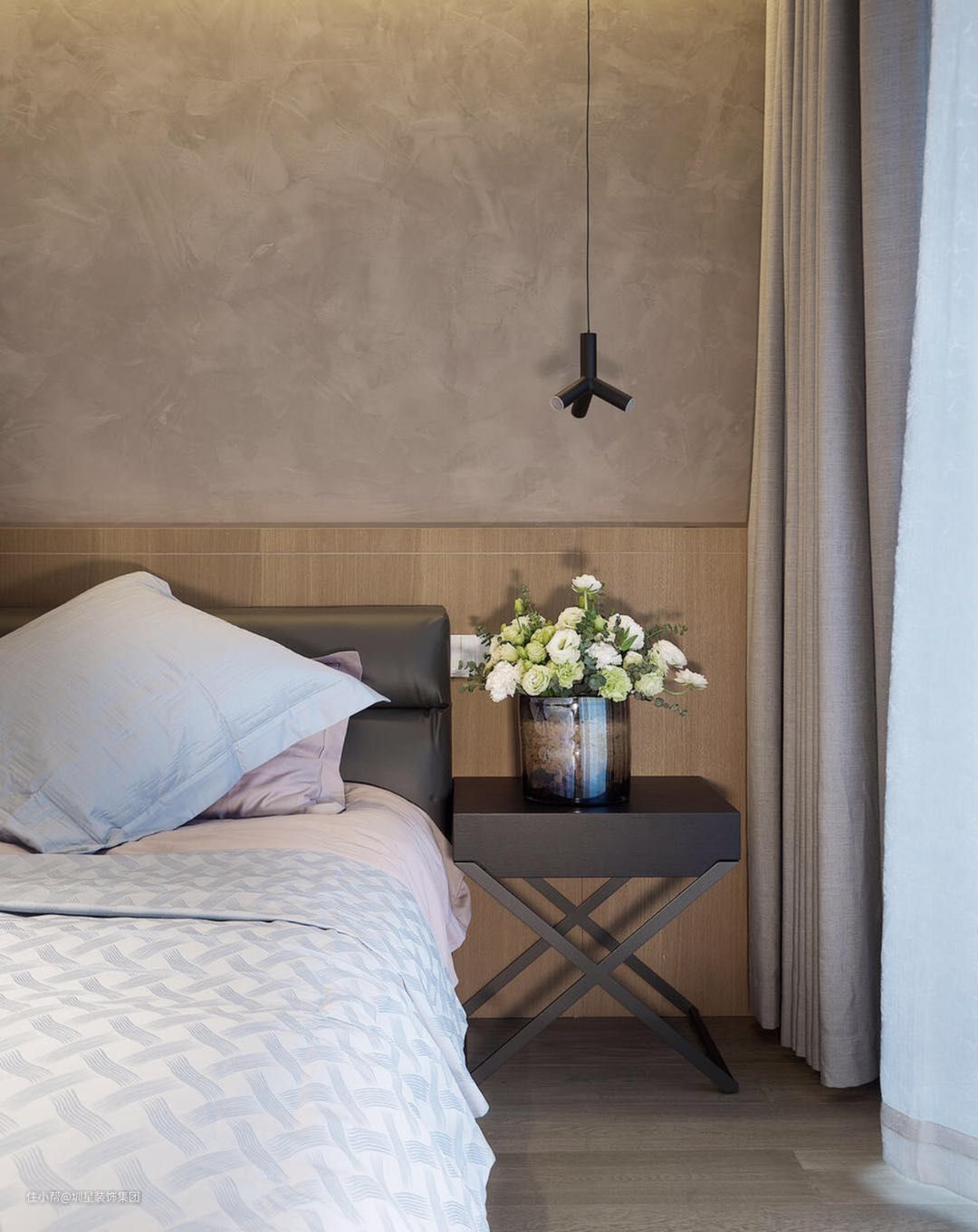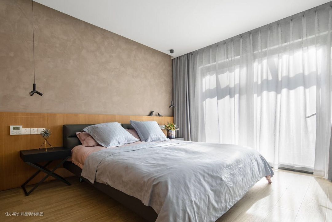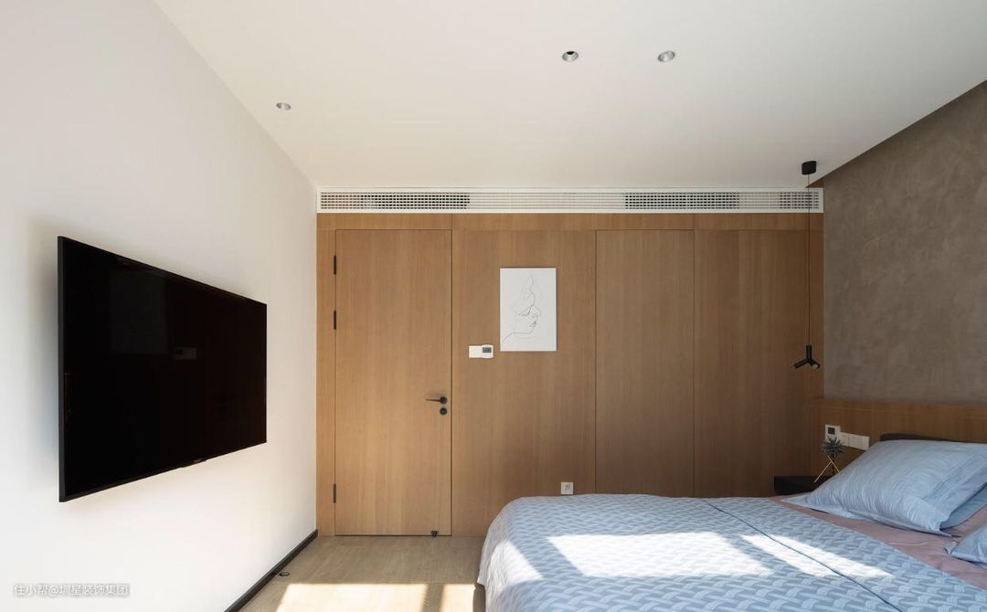 10.卧室结构尽量简化,依据功能设置进行色块构成,水泥漆的加入对比出木作的暖。