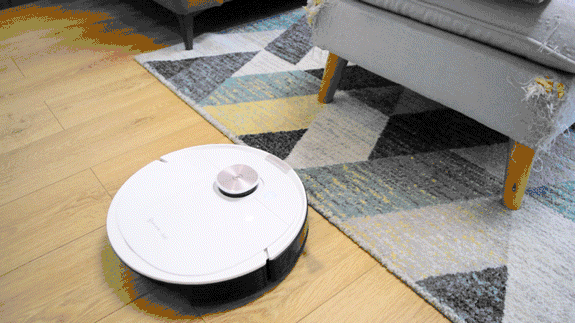 另外在使用中,TrueDetectTM3D避障技术的结构光识别功能能够处处有所体现,前方的传感器能够识别到前方障碍物的高度,宽度,距离等信息,当识别到凳腿之间的距离过于狭窄时,会立即改变路线,整个过程中机器前端几乎不会碰撞到蹬腿,并非传统的扫地机器人使用前面的的防撞传感器去试探,真的像拥有了一双眼睛。