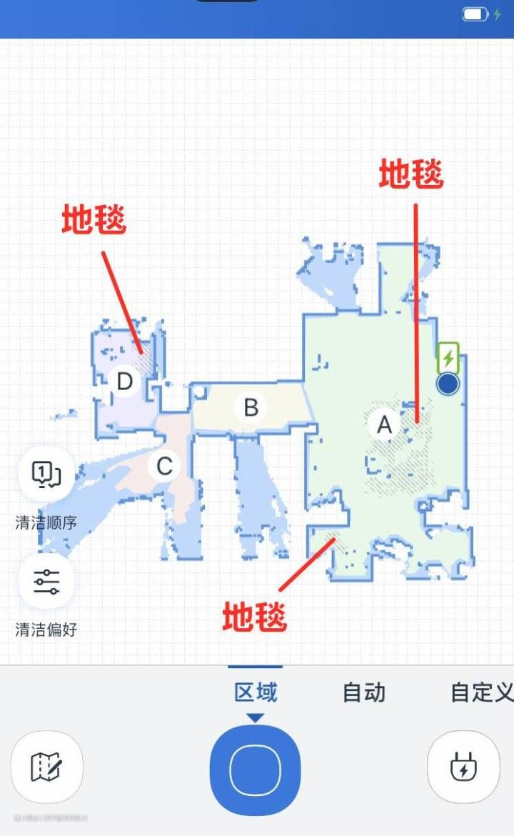 这里还有个比较智能的设计,当机器安装了水箱,为了防止地毯弄湿,机器人识别到地毯后,会自动绕开,即使是家中无人,也可以放心的让机器人完成清扫。