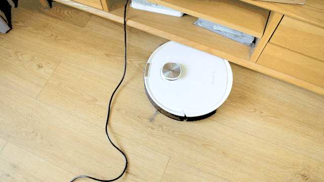 在实际使用中,小泽使用了平时最容易被扫地机器人忽视的电源线进行测试,家里老款的吸尘器都会选择直接跨越,造成电源线缠绕的情况,超能王在靠近电源线的时候灵活的进行了转弯避让,识别成功率达到了90%以上。