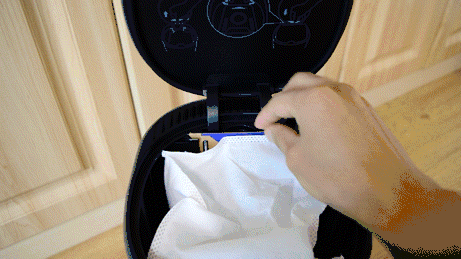 提手下方有一个圆形的孔洞,垃圾就是从这里被抽入到集尘袋里的,整个清洁过程都不需要用手来接触灰尘,这也是这款机器最吸引我的地方。