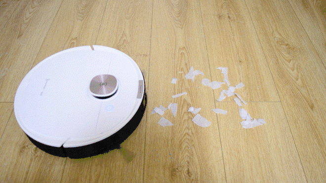 清扫地面是扫地机器人最基本的能力,科沃斯超能王的吸力压强为1500Pa,通过扫,卷,吸三个动作实现对垃圾的清扫。小泽之前看到很多电视购物很喜欢将纸屑作为终极挑战来展示,其实纸屑是最容易清扫的,扫地机器人基本上一遍就过。