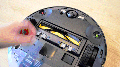 与小泽家之前使用的扫地机器人不同的是这款科沃斯超能王的滚刷上使用了软毛与橡胶扇页成V字排列的方式,在清扫时软毛刷负责清扫缝隙中的尘土,橡胶扇页则能够吸附从刷毛的缝隙中遗漏的灰尘,增强整个滚刷的携尘能力,这样的组合无疑是非常合理的。