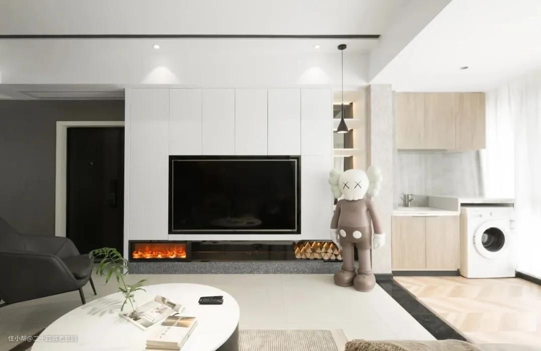 电视墙下方融入壁炉设计,烘托氛围,让客厅显得更加温暖舒适。