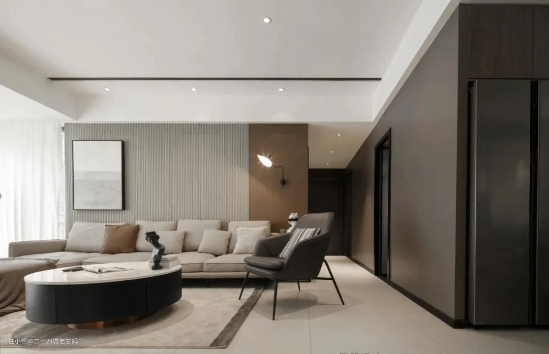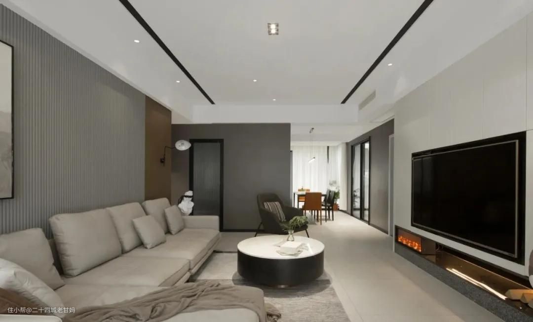 ▲客厅空间以现代风为基调,采取无主灯设计,筒灯加上黑色线条增加空间层次感,凸显时尚与高级的气质。