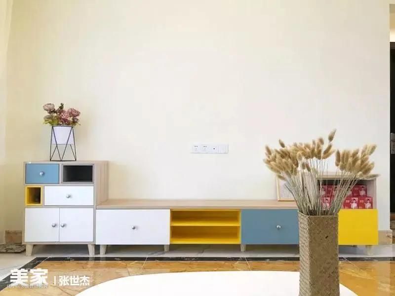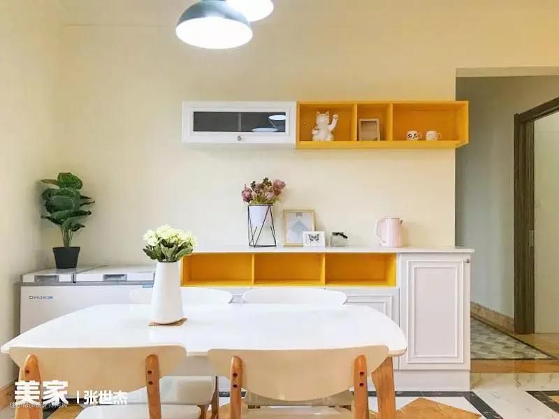 ▲ 全屋用黄白配色打造温馨北欧风,90㎡的小家颜值高且收纳灵活。电视柜、餐边柜等家具不做复杂设计,营造温暖又不杂乱的家居氛围。