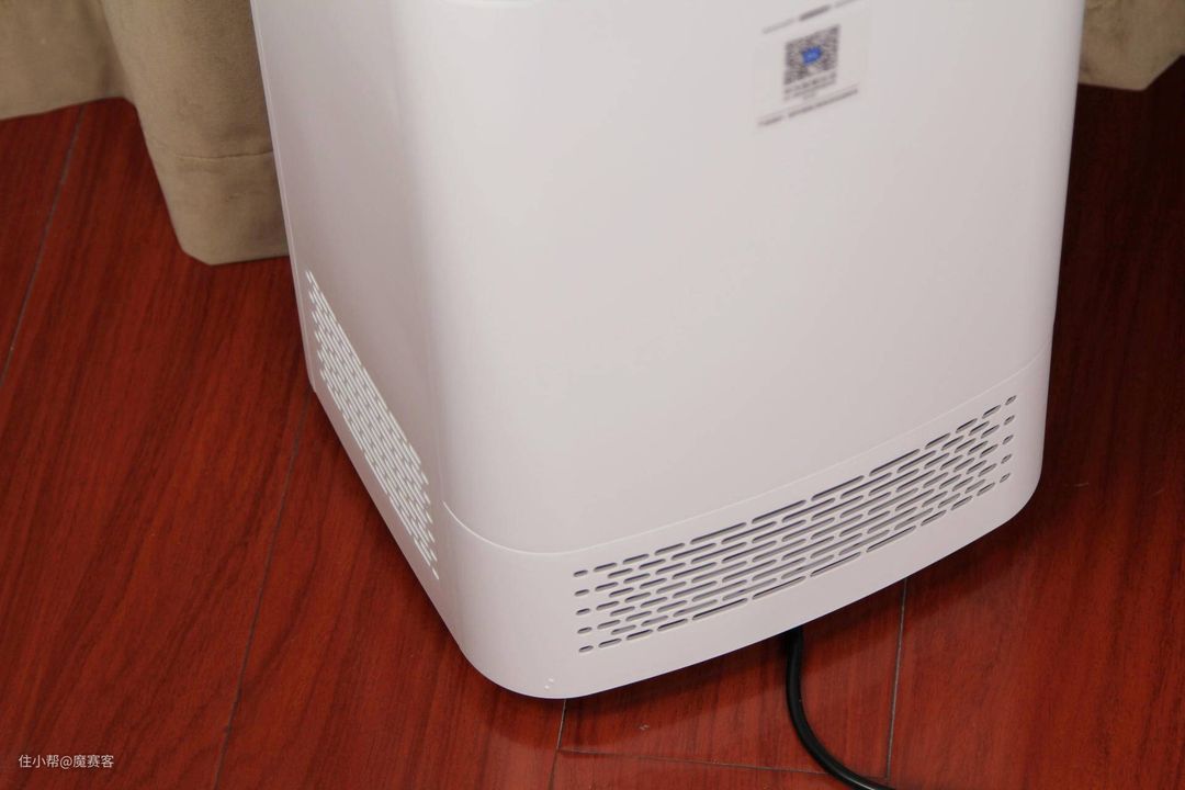 ▲X3的外形是较为常见的直立式,成竖型的长方体,尺寸为316*306*650mm,注意了,一般净化器周围要留出10~20公分(cm)的空隙,差不多是1个到2个拳头的距离,否则效果会打折扣;机器的分量大概是10公斤左右,房间里移动还是很轻松的。