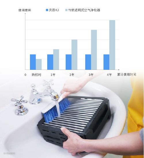 ①成本。虽然新机比传统滤网式净化器多花点费用,但长久来看,X3不再额外花钱买滤网,长期使用费用反而便宜。