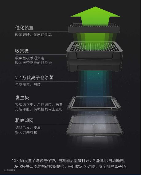▲这是一种来自硅谷的空气净化技术。在收集极和发生极之间制造高能离子场,利用高浓度的离子,主动捕捉颗粒物、杀菌灭毒、分解甲醛……既规避了传统滤网技术的性能打折和反复更换滤网的问题,又解决了传统静电技术的效率不高和臭氧控制的问题!