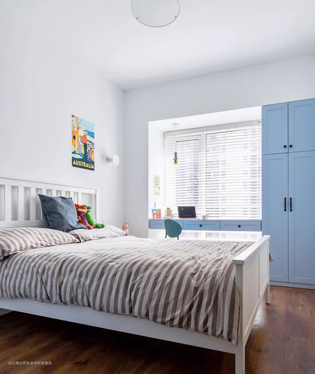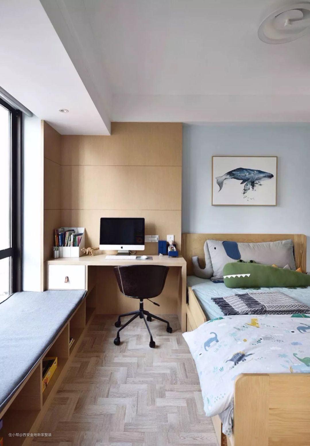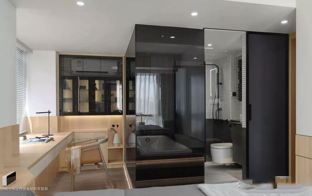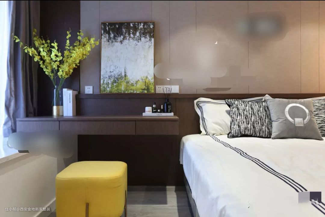 想要更大化的利用好空间,我强烈推荐大家学习利用这种“一体式”设计,飘窗、书桌、床头柜,甚至床,都有一体化设计,非常节省空间。