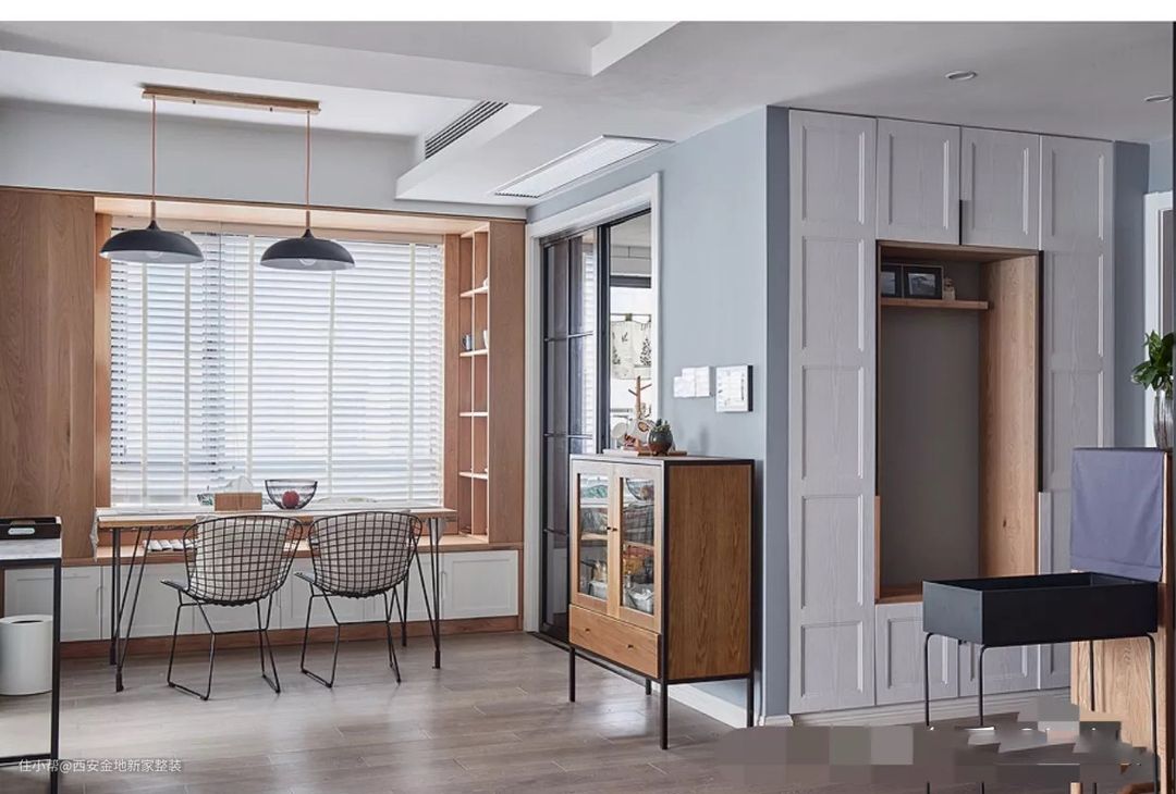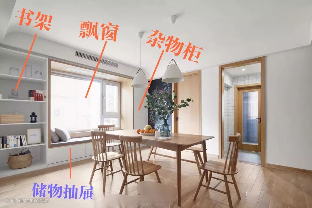 想要最大化利用飘窗,打造餐厅也是一个不错的办法,不但节省空间,同时赋予餐厅双功能属性。