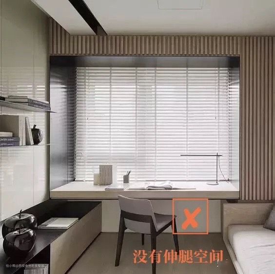 我设计过很多这种案例,最实用的做法是将桌子向外延伸20-35CM,才能实现一个舒适的工作空间。