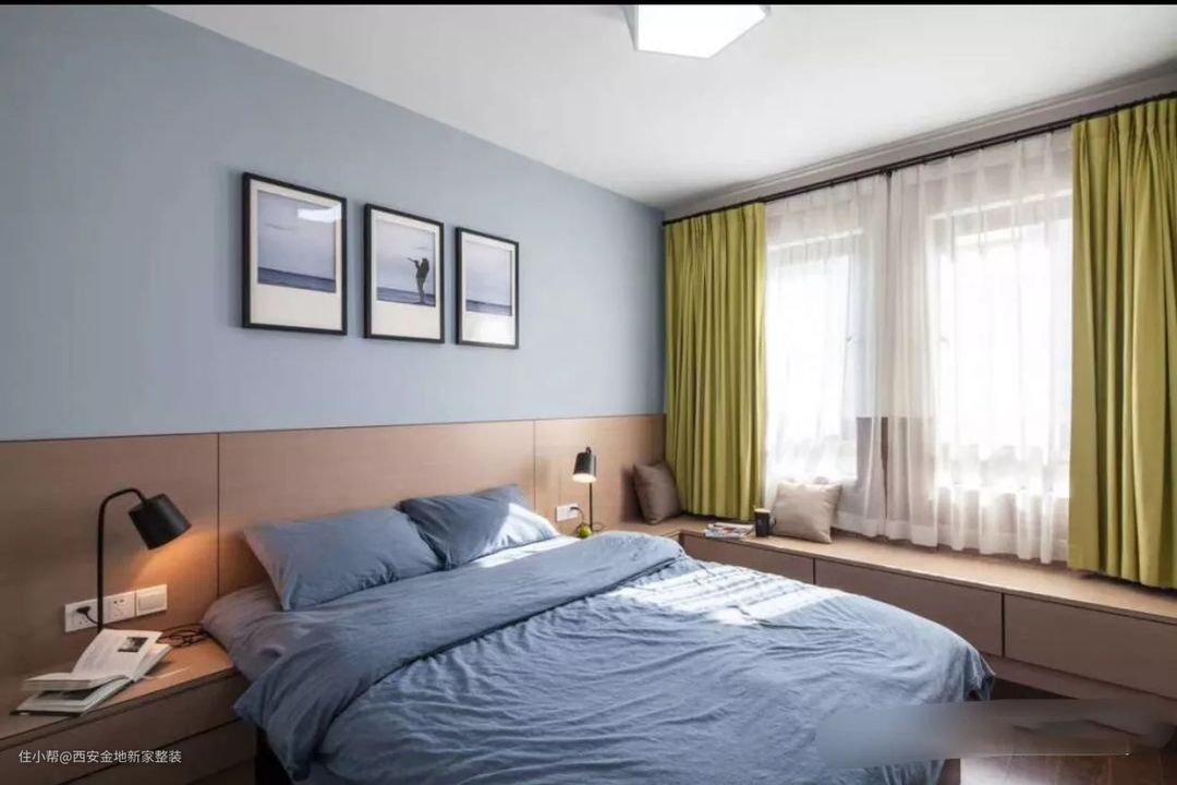 很多人想砸飘窗,大多数是因为卧室面积本就很局促,这个时候只要把飘窗的地方延伸出一米五左右,省出一个床位的同时,还有各种收纳空间。