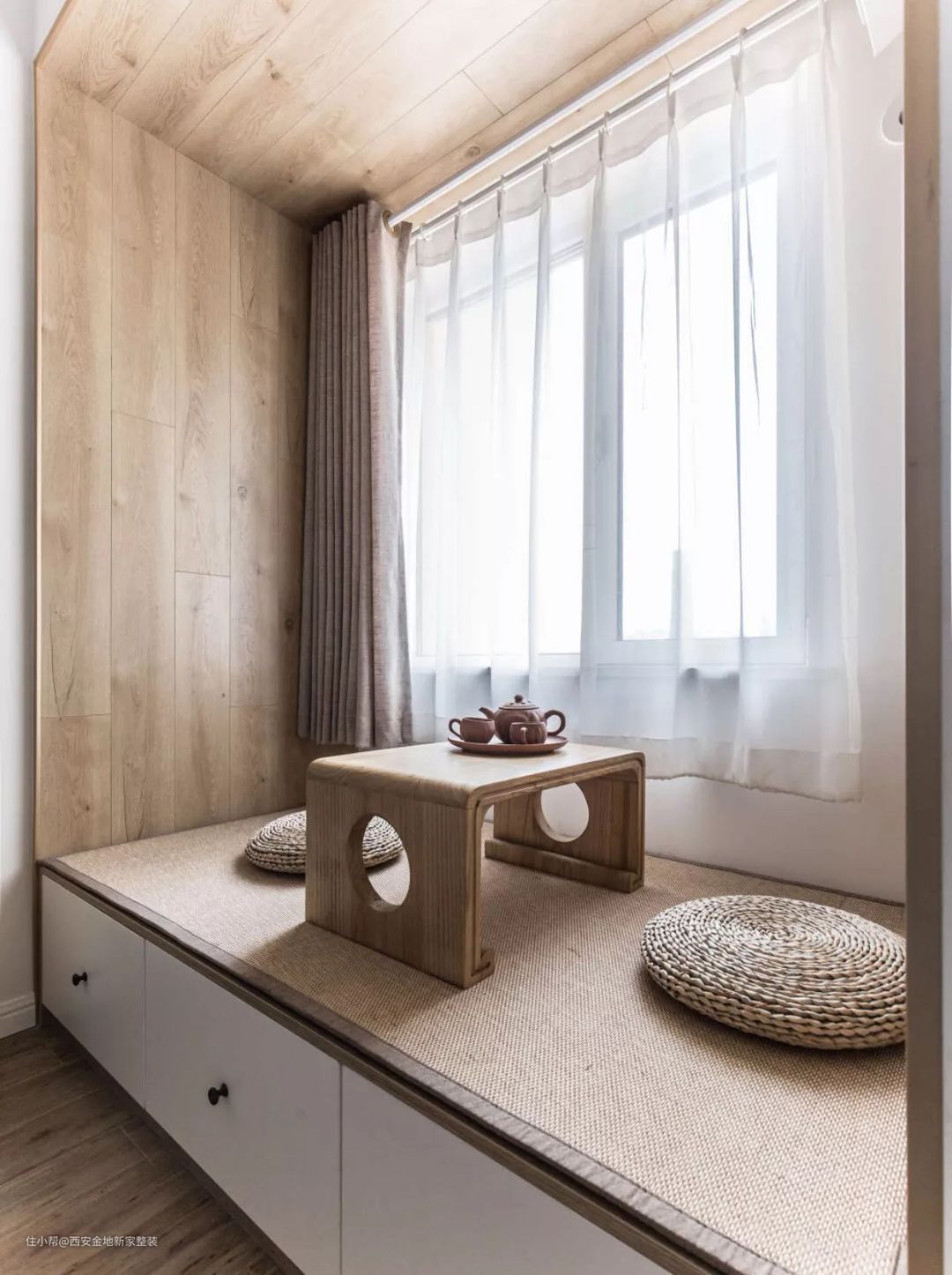 与飘窗齐平设计榻榻米,实用面积瞬间变得非常宽敞。