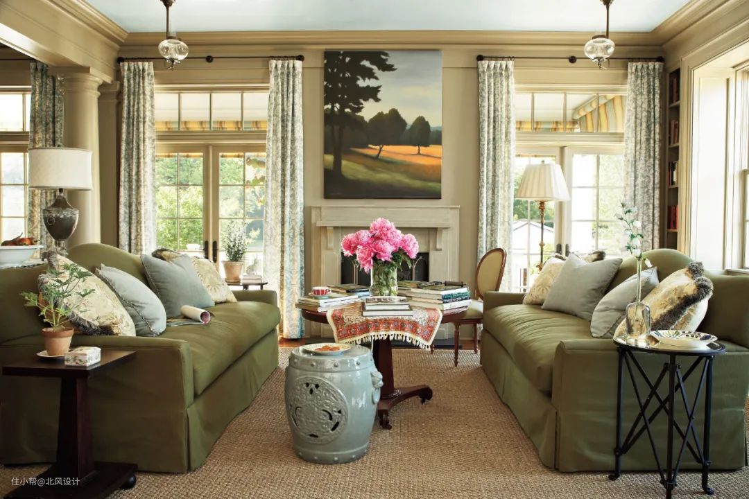 使用一种涂料颜色,并减少百分比变化,可以使空间在保持内聚外观的同时发挥阴影饱和度。